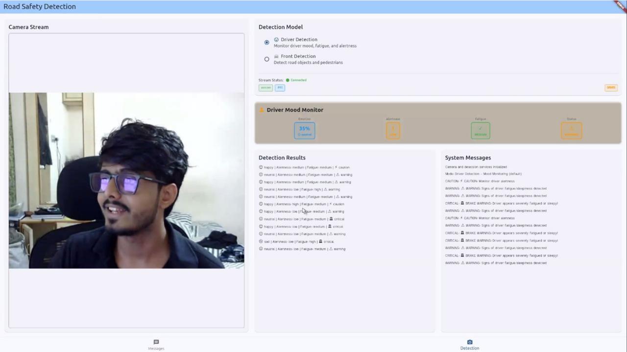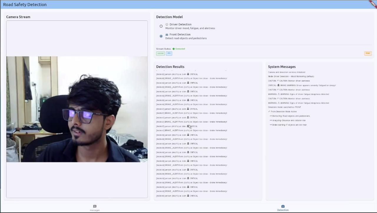 With communication established, we needed a real-world use case. We chose to incorporate a camera. Early experiments with simulators didn’t yield much direction, but eventually we focused on object detection as a practical automotive feature. The idea was to detect objects in real time, enabling the car to warn the driver or even brake in critical scenarios. I implemented this in the application, and once we confirmed it was working, we expanded the concept further. With remaining time, we added a driver-monitoring feature that detects fatigue or drowsiness using camera input, allowing the system to alert the driver and trigger appropriate safety behavior.